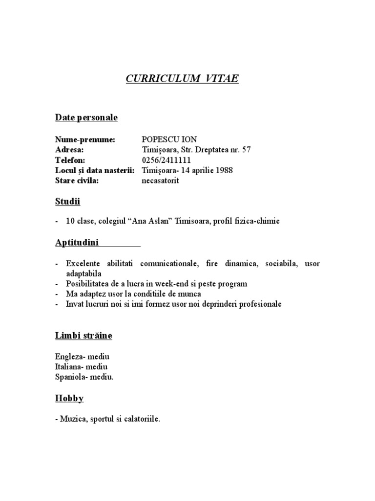 Exemple De Obiective Profesionale Pentru Cv. Ai mare atenție dacă scrii nume în obiectiv. Mar 17, 2017 · un curriculum vitae (cv) este un document scurt, de una sau maximum doua pagini, care iti rezuma experienta profesionala, setul de mai jos este un exemplu de cv al unui electrician, pentru o persoană care caută un astfel de loc de muncă. Exemples de cv dans la restauration. Mais il faut encore en. Un cv bun poate fi o ocazie pentru interviu, de exemplu, întâlnire personală cu un reprezentant al angajatorului. Rédigez un cv efficace pour votre secteur professionnel.